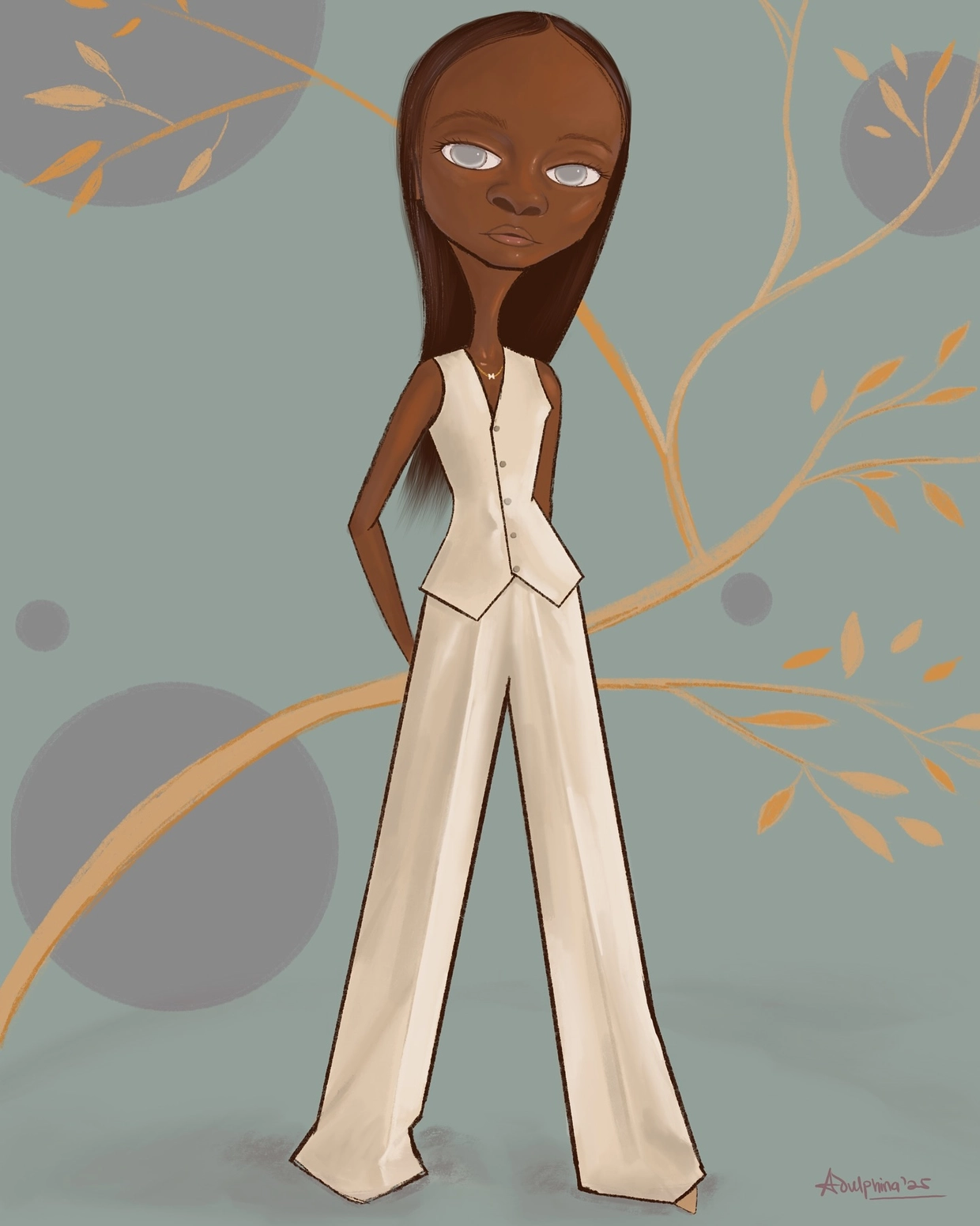 Through her work, Adulphina not only pays homage to female-forward fashion brands like Bawsty, Cladini Studio, and Knanfe Fashion, which have long championed female empowerment, but she also offers a new way of experiencing fashion. Her illustrations invite viewers to see familiar products reimagined in a style that is both fresh and deeply personal.
