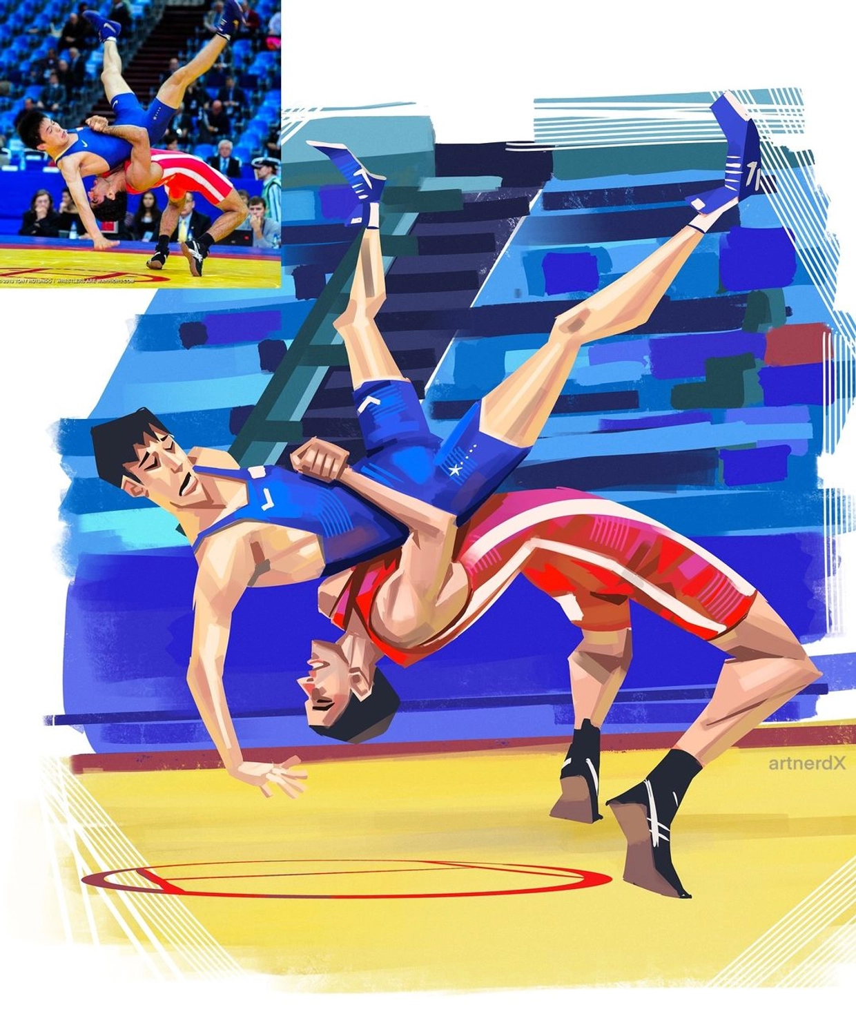 Bolaji Olaloye is a character designer and illustrator who has created these dynamic figures as part of his daily practice, drawing inspiration from sports illustrations at the recent Olympics in France.